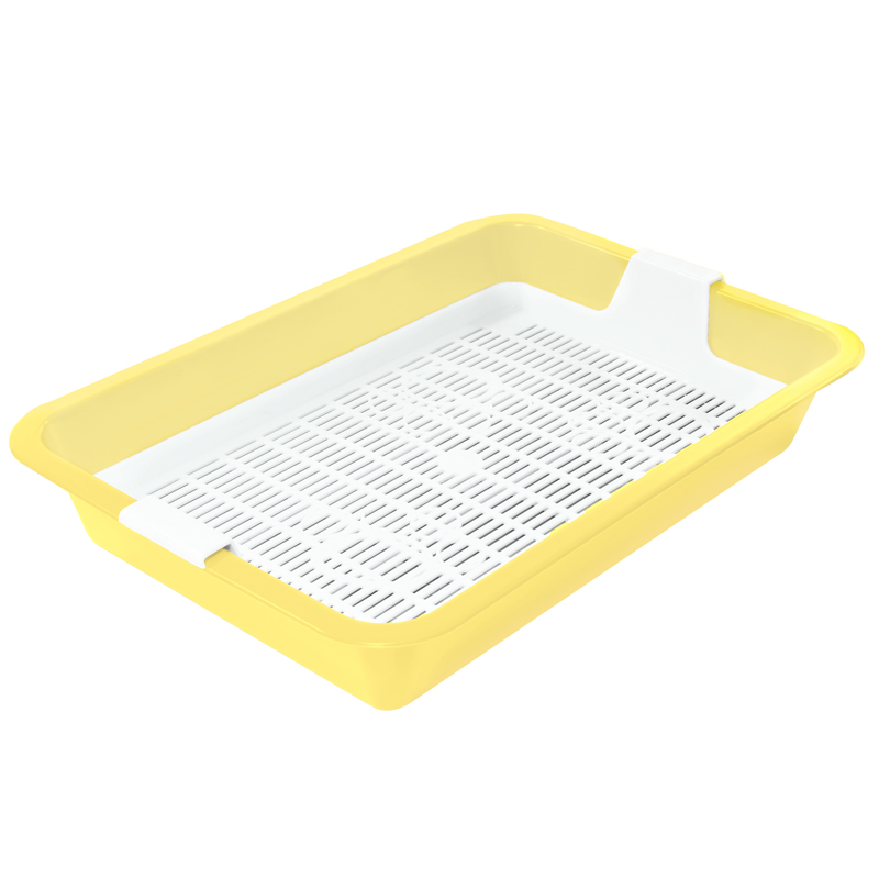 Съемная сетка максимально упрощает уборку, а компактные габариты изделия позволят разместить его с комфортом для животного в любом месте. Туалет изготовлен из высококачественного пластика и легко чистится под струей воды при помощи моющих бытовых средств.